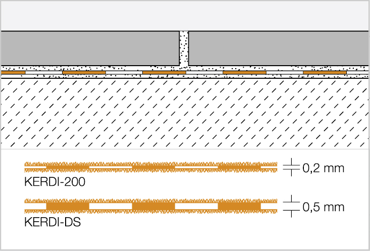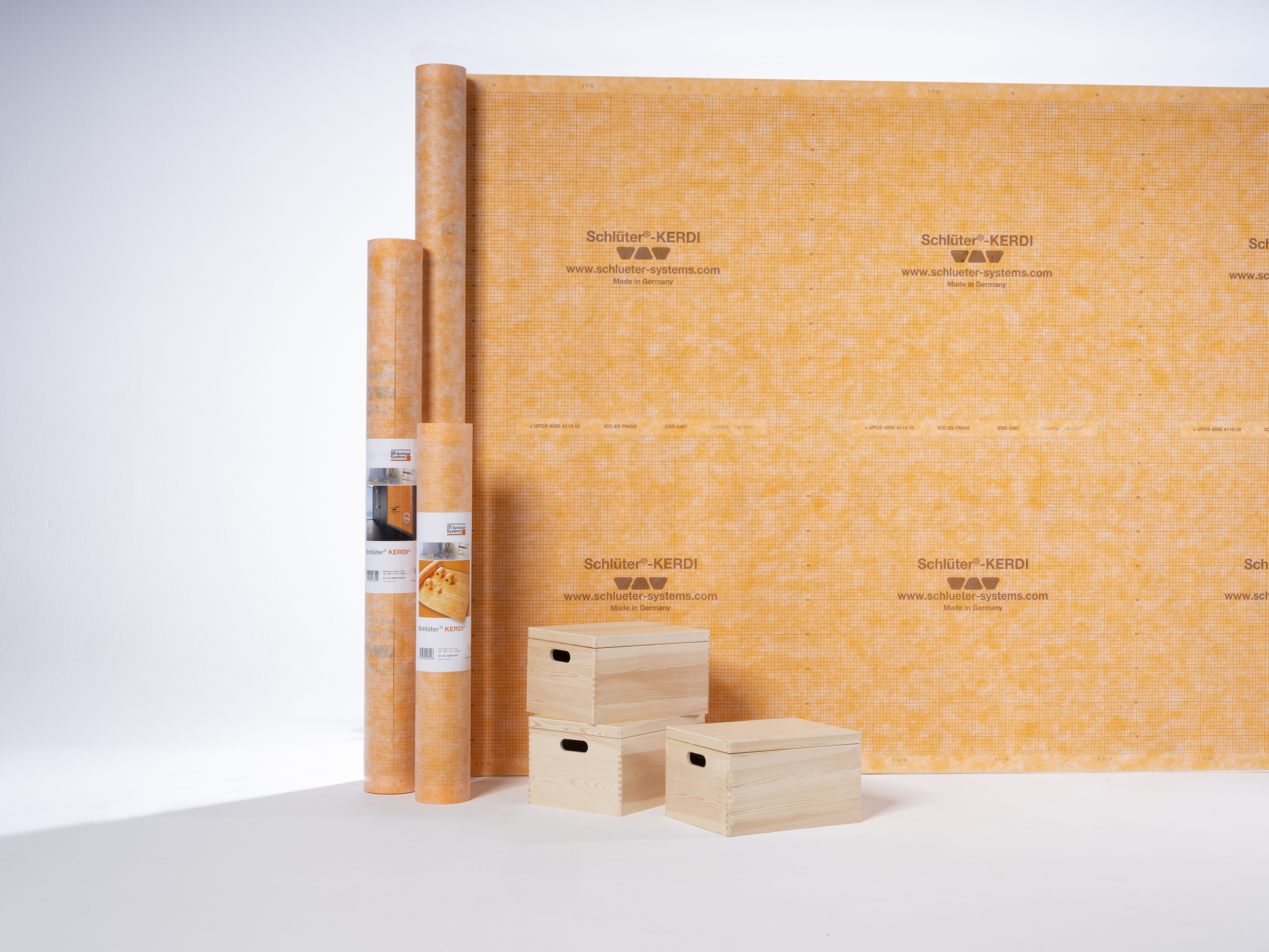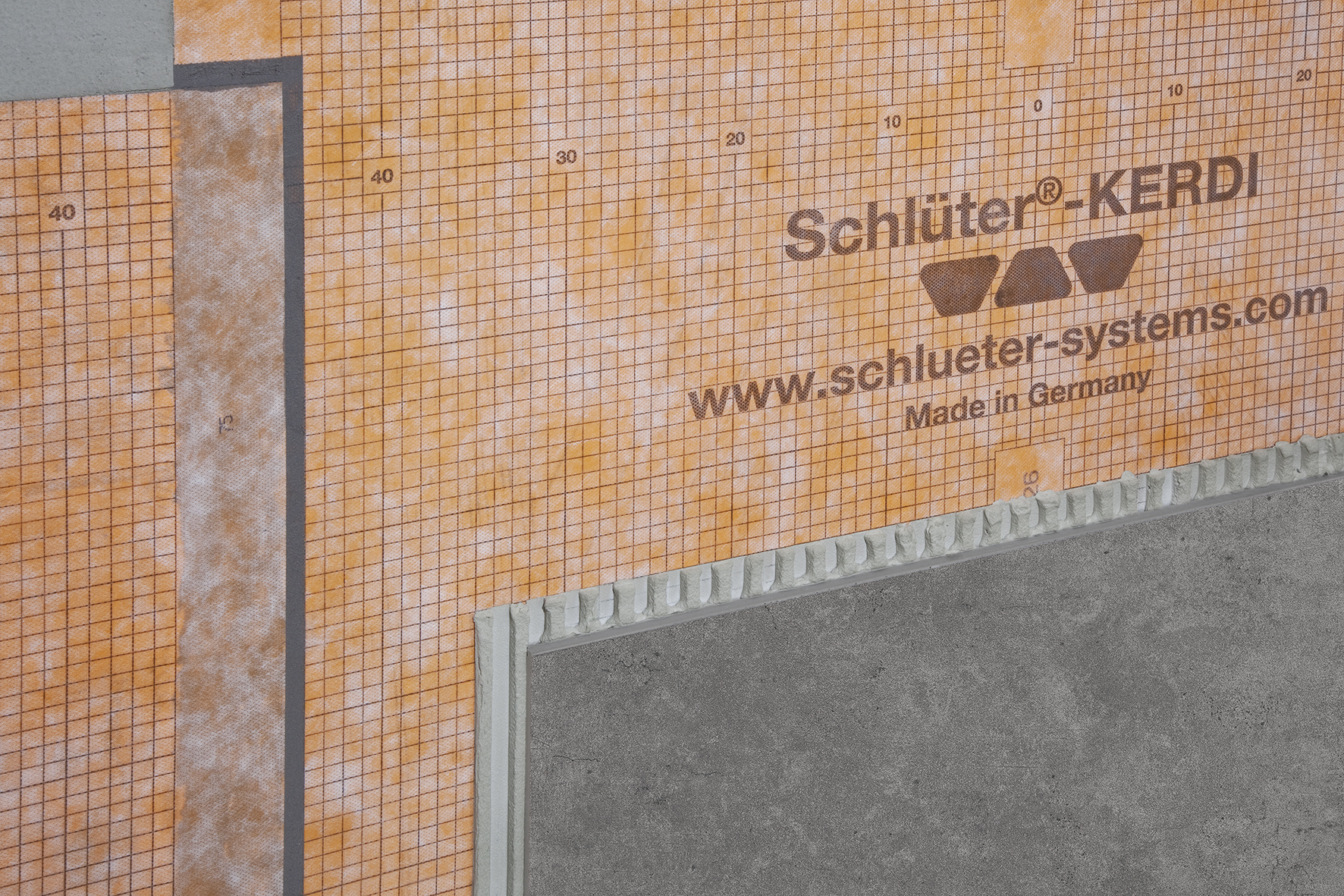 Schlüter®-KERDI is een barstoverbruggende afdichtingsmat uit zacht polyethyleen die aan beide zijden is voorzien van een speciaal vliesweefsel voor een doeltreffende verankering in de tegellijm.
