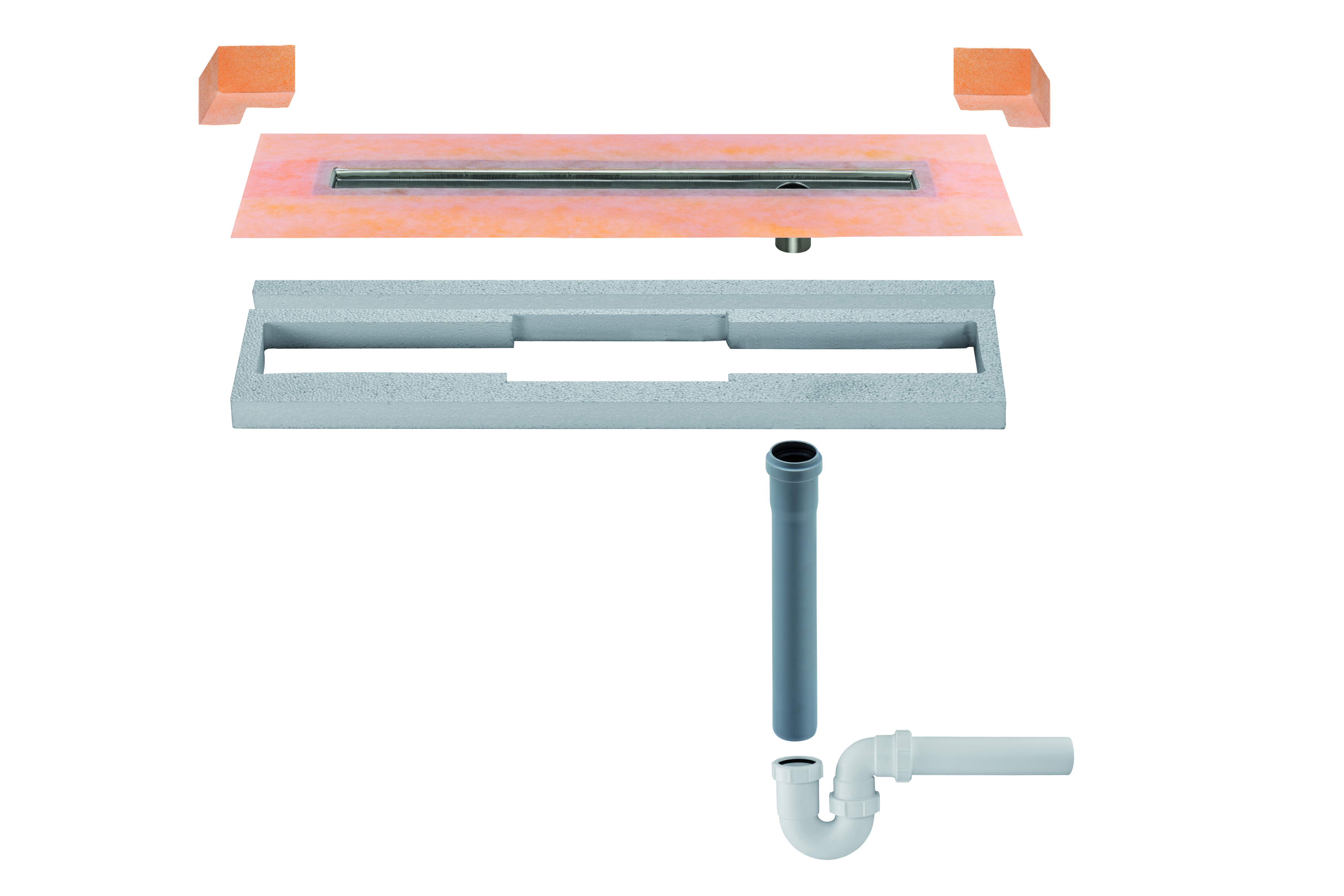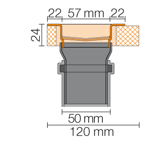 Schlüter KERDI-LINE-V verticaal DN50 GV met sifon, decentrale afwatering lijnafvoergoot