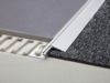 Schlüter®-RENO-V is een profiel met een variabele overgangsflens voor de traploze overgang tussen op verschillende hoogte gelegen vloerbekledingen. Vanwege het voegribje wordt een vaste voegafstand tot de tegel bepaald.